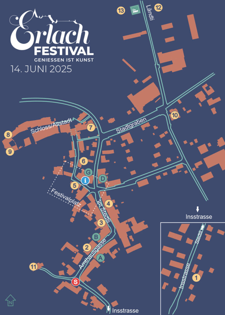 Erlach zeichnet sich durch ein lebendiges, kulturelles Leben aus. Es bietet mit Schloss, See und mehreren malerischen Auftrittsräumen in Stedtli und Altstadt gute Bedingungen für ein vielfältiges, kulturelles Angebot. Diese Lokale werden mit passender Musik wie Jazz, Blues, Folk, Pop und Rock bis hin zu modernem Ländler bespielt. Erlach lässt sich am Festival, welches immer am Samstag nach Pfingsten stattfindet, musikalisch und kulinarisch entdecken: «Vielfalt ist Programm». Der Verein Erlach Festival organisiert dieses intime, ungeschminkte und echte Musikerlebnis. Tauchen Sie ein und lassen Sie sich verzaubern.